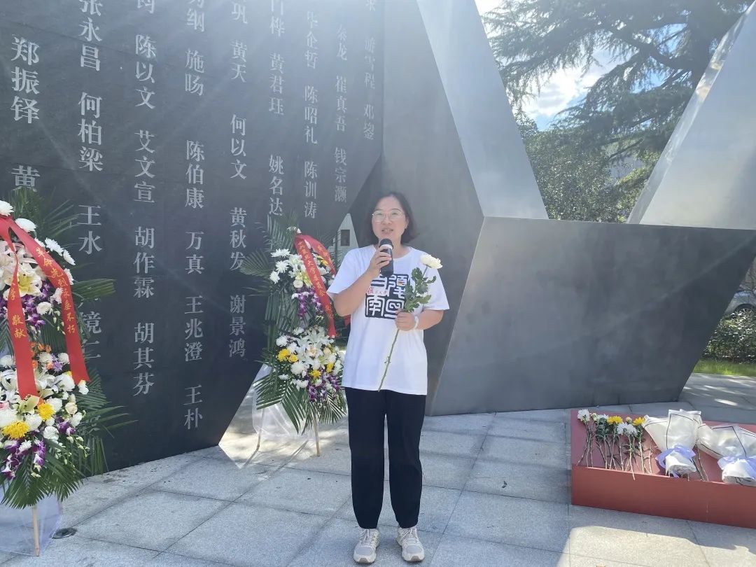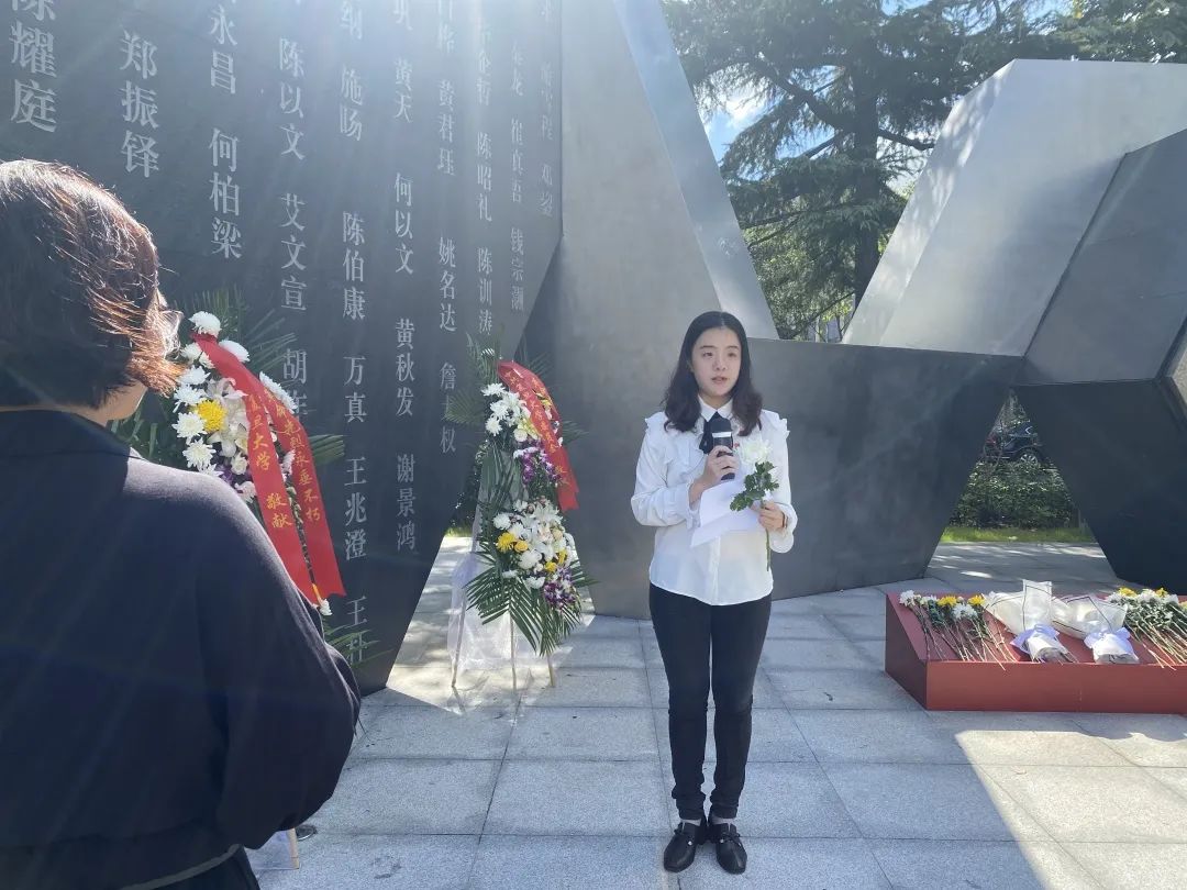 预备党员、2019级法语系本科生蒋佳霓表示:“我们齐聚在此,缅怀所有革命烈士,为他们献花,以表哀思。如今充满鲜花的盛世,如今的幸福生活,离不开党的领导及无数革命先烈们的无私奉献。我们不仅要深入了解烈士的生平故事,更要从英雄事迹中汲取强大的精神力量。”