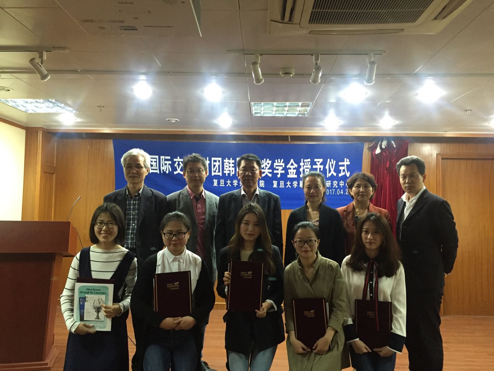 2017年4月21日上午,韩国国际交流财团韩国学奖学金授予仪式在复旦大学文科楼209会议室如期举行。