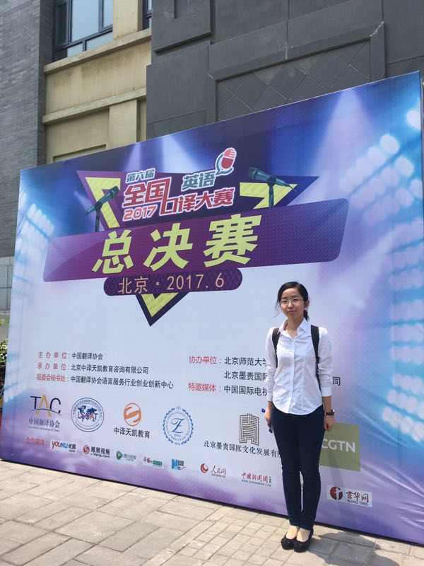 本届大赛于2017 年2月在全国22个省市启动。经过初赛,共有456所院校的1844名选手参加了于4月15日和22日举办的省级交传复赛,产生了499名晋级交传大区赛的选手,我院翻译系王炎强和冯超老师指导的共计4名选手入围华东大区赛。 其中李闻昱同学以华东区第一名的成绩晋级全国总决赛。冯超老师赴京指导学生角逐最终荣获全国交传总决赛一等奖。