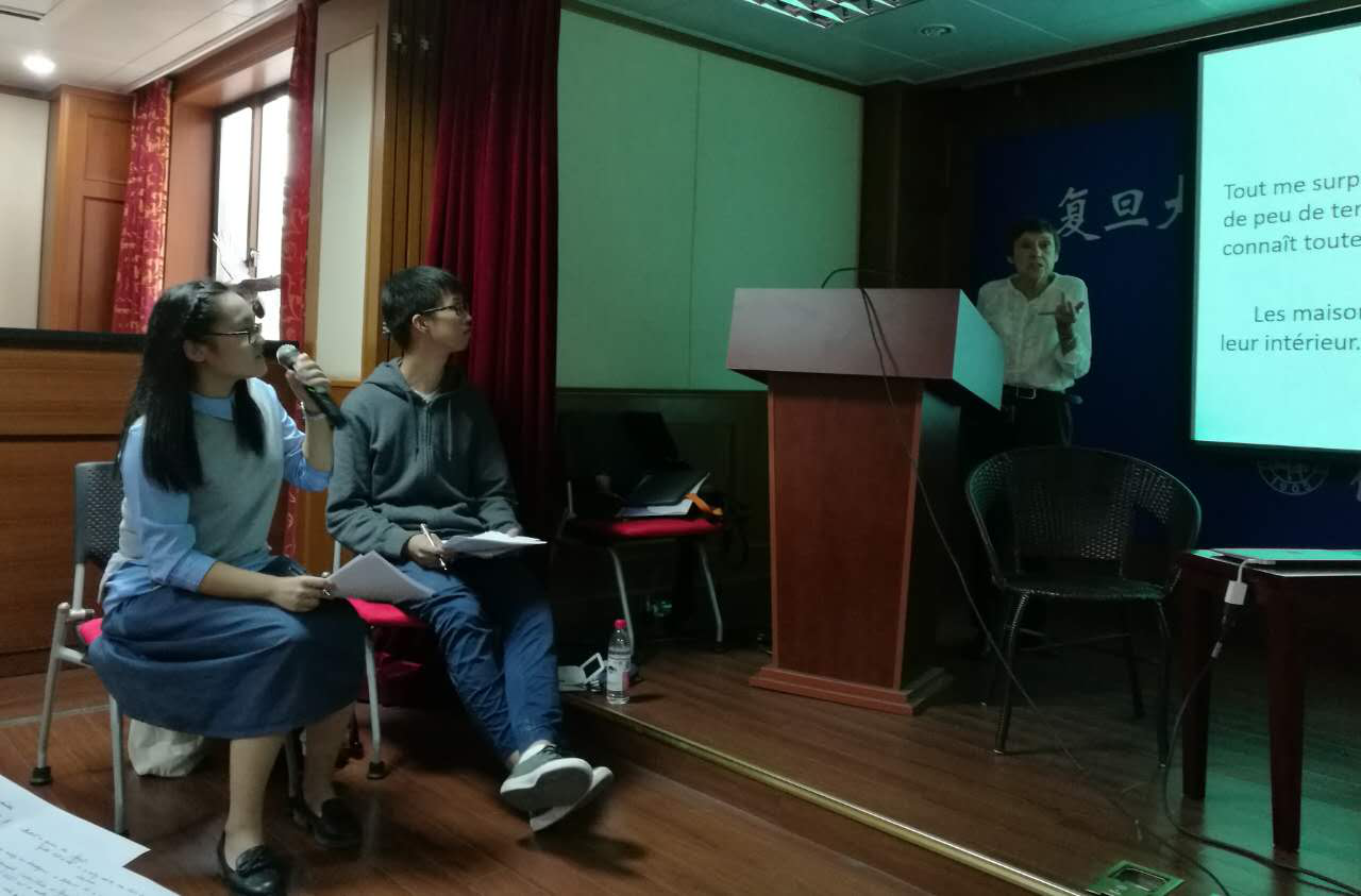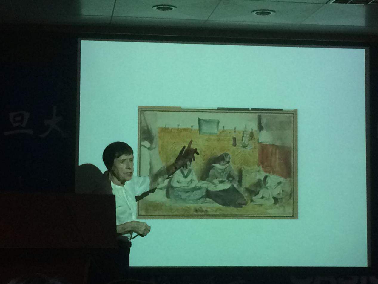2017年9月29日,法国当代哲学家、巴黎高等师范学校教授、前哲学系主任Claude Imbert教授应邀来我校外文学院做题为《Delacroix, aquarelles du voyage au Maroc: une clé analytique(德拉克洛瓦,摩洛哥之行的水彩画:一把分析的密钥)》的精彩讲座。讲座在文科楼209会议室举行,由外文学院法文系外教Gaultier Roux博士主持,由法文系研究生程毓凝、张颉文进行现场翻译,吸引了复旦大学各院系众多师生参加。