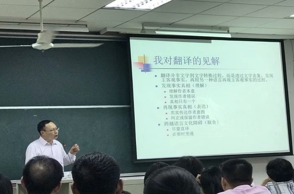 2017年10月10日晚,北京外国语大学高级翻译学院副院长李长栓教授受外文学院邀请来到复旦大学,为学校师生以及一些翻译界人士带来了题为“翻译是发现和再现真相的过程”的讲座,陶友兰教授主持讲座并致欢迎辞。
