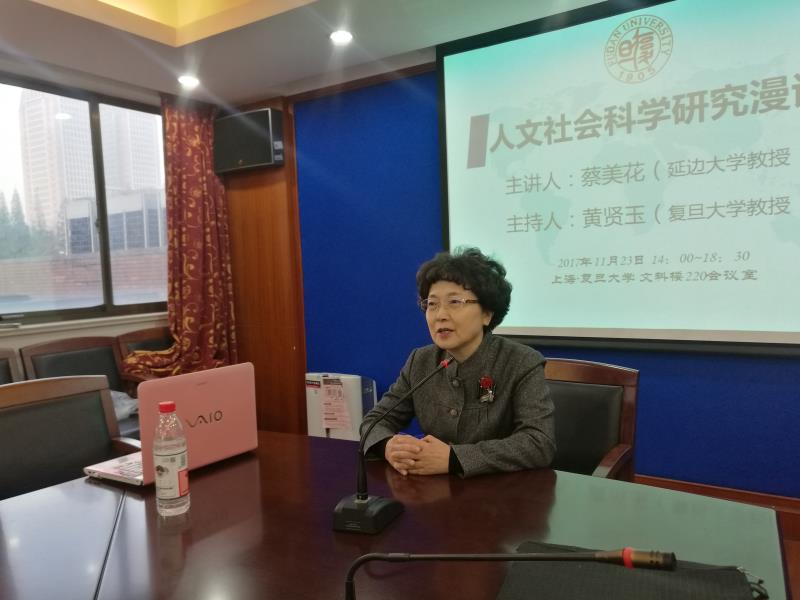 2017年11月23日下午,延边大学朝鲜-韩国学院蔡美花教授应邀做客复旦大学,在复旦大学文科楼220报告厅为韩文系师生带来精彩的讲座。