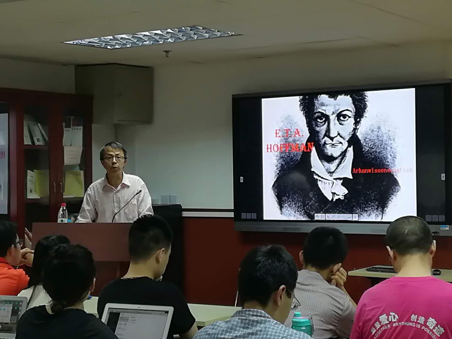 2018年5月17日,复旦大学外文学院青联会有幸邀请了上海外国语大学德语系梁锡江教授,在文科楼424举行了主题为“德国浪漫派作家霍夫曼与神秘学”的讲座。本次讲座由外文学院德语系青年研究员李双志老师主持,吸引了众多对霍夫曼、对神秘学感兴趣的本校外校师生。