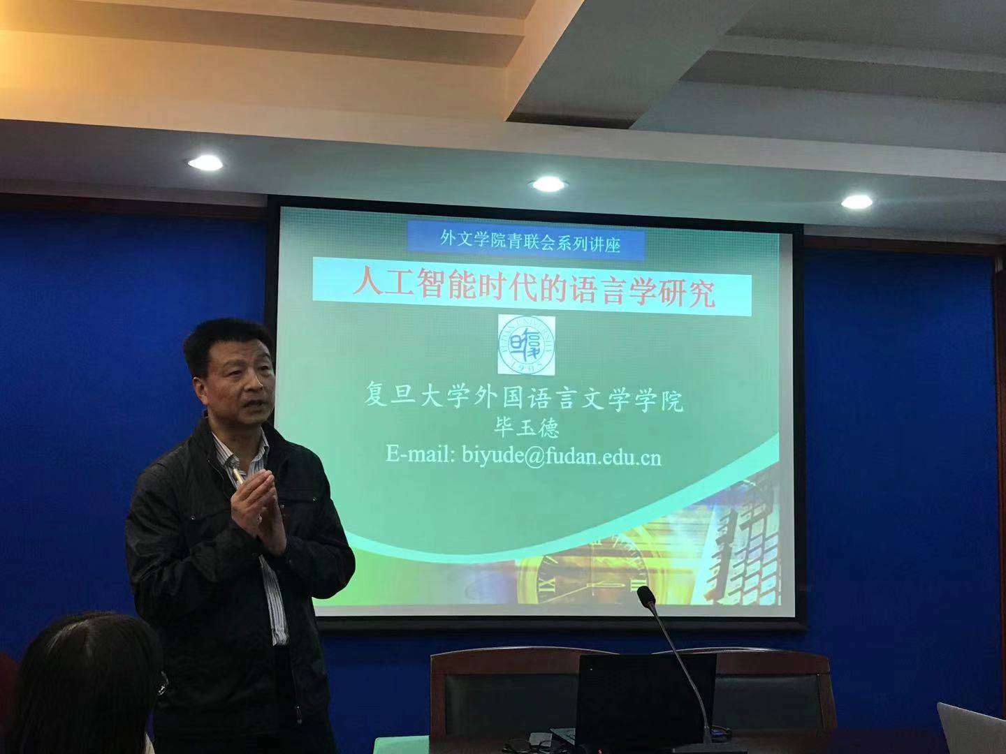 2019年10月22日下午,外文学院青联会邀请leyu乐鱼官方web站登录入口韩文系毕玉德教授作了一场题为“人工智能时代的语言学研究”的学术讲座。