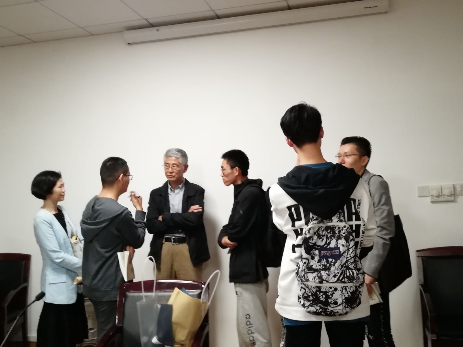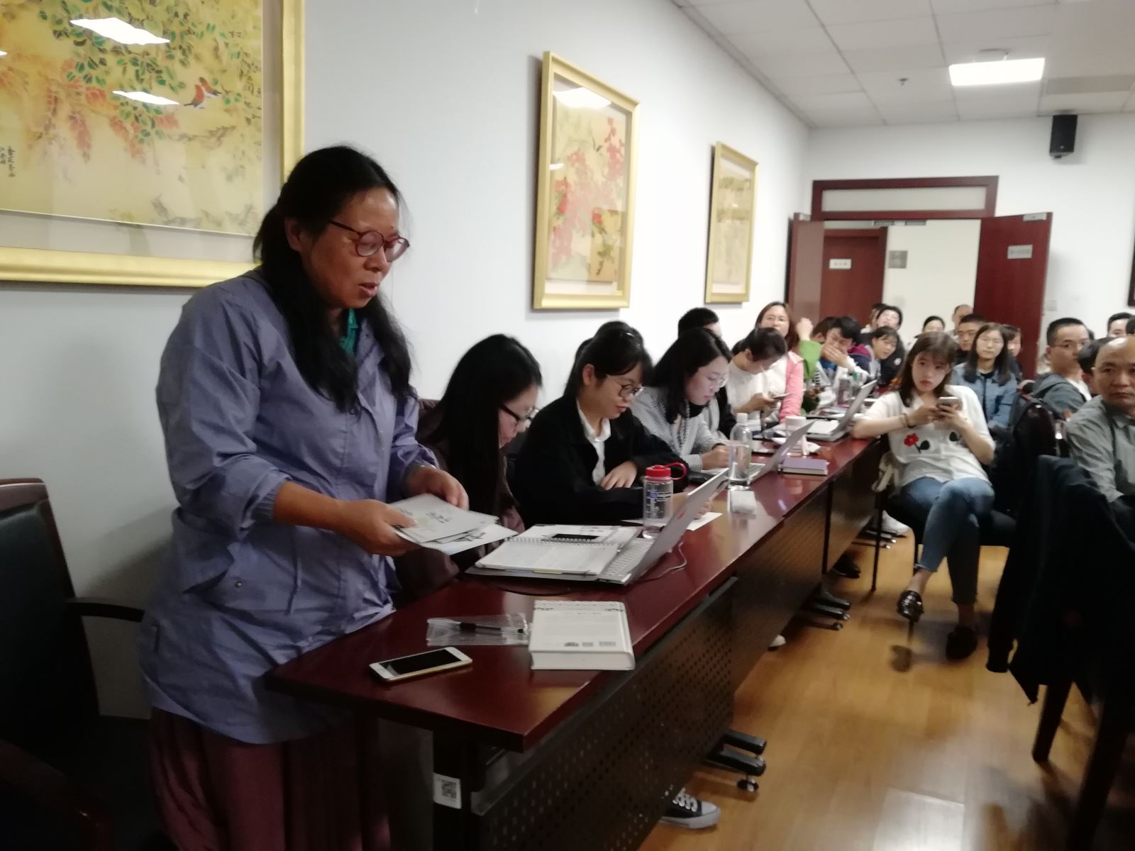 济济一堂的听众席中,不仅有来自复旦大学翻译系、哲学系、历史系部分师生,还有同济大学、上海大学、上海理工大学等高校的各专业师生,更有坐长途汽车从舟山、苏州、合肥、池州等地赶来的老师和同学。他们都提出了自己领域中与中国典籍研究相关的问题,倪教授一一耐心解答。当他说“做个真正中国人是种成就”时,在座师生深受触动,报以热烈掌声。倪教授学识丰富,亲切随和,讲座视角新颖、深入浅出。苏州一位家学渊源的老师在她自己的诗中说“感到/翻译界的窗里吹出清风/知重‘自家学问’/而且深切用功”。讲座结束了,大家仍然意犹未尽,迟迟不肯散去,又与倪教授进行了长时间的交流。