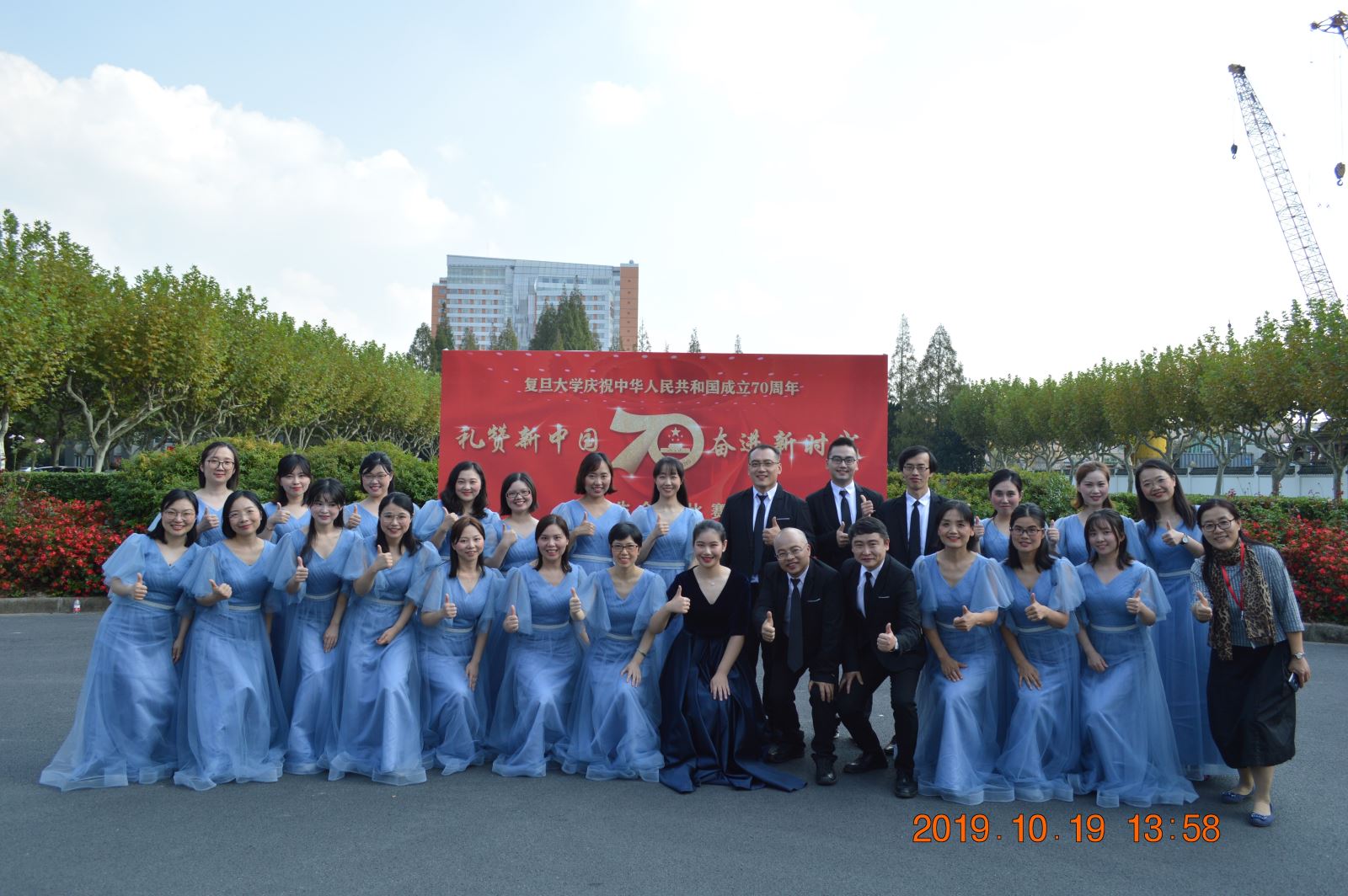 2019年10月19日,“礼赞新中国、奋进新时代”——复旦大学师生庆祝新中国成立70周年师生合唱比赛在相辉堂隆重举行。外文学院合唱团参加了大合唱比赛,经过一个多月的紧张排练,师生默契十足,现场发挥稳定,赢得掌声阵阵。最后虽与奖项擦肩而过,但师生拳拳赤子心、殷殷爱国情在歌声中愈唱愈响,激励着外院师生不忘初心、砥砺向前。