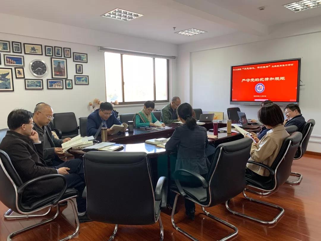 11月8日,外文学院党委举行“不忘初心、牢记使命”主题教育第六次集中学习研讨。党委书记罗英华主持学习,学院党政领导班子聚焦党的政治纪律和政治规矩,重点学习党章、《关于新形势下党内政治生活的若干准则》、《中国共产党纪律处分条例》,掌握党内法规的基本要求,围绕严格遵守党的纪律和规矩,始终保持党的先进性和纯洁性开展研讨交流。罗英华表示,严肃党内政治生活是全面从严治党的基础。作为高校党员干部,一要强化纪律规矩意识,从思想入手,保持坚定的理想信念和纯洁的党性修养,以思想自觉引领言行自觉;二是要守好廉洁自律底线,知行合一言行一致,做到“五个必须”,按照规矩办事;三是要勇于攻坚克难担当作为,在守纪律、讲规矩的要求下扎实工作、主动作为,推动解决问题、克服难题、服务群众,为学院事业发展提供坚强政治保证。 高永伟表示,新形势下,全面从严治党非常必要。不仅能提高党的凝聚力和战斗力,而且也能使广大党员更好地贯彻群众路线,不断加深与群众的联系。作为党员,一定要理论联系实际,牢固树立四个意识,严以律己,做事要实,乐于奉献,勇于开展批评和自我批评。高校中的党员干部更应该坚持全心全意为人民服务的根本宗旨,继承党的优良传统和作风,自觉培养高尚道德情操,努力弘扬中华民族传统美德,廉洁自律,接受广大师生的监督。只有这样才能永葆党的先进性和纯洁性。朱建新表示,通过学习自己再次意识到了严以律己,严守党的政治纪律和政治规矩重要性。政治纪律是不可逾越的“雷区”, 遵守党的政治纪律和政治规矩是党员的基本义务。严明政治纪律不能停留在口头上,必须落实到行动中,做到履职尽责,勇于政治担当。守纪律、讲规矩的目的就是每个党员干部自觉把党纪党规内化于心、外化于行,以更加优良的作风,干好本职工作。在今后的学习中要不断提升自己的政治素养,不断强化自己的纪律观念,在工作中努力做到尊重领导和同事,襟怀坦白、光明磊落,坚守正道、弘扬正气,把遵守党纪化为自觉行动。郑咏滟表示,习近平总书记指出,“办好中国的事情,关键在党”,党的执政地位和肩负的历史使命,要求我们治国必先治党,治党务必从严。党要管党、从严治党,这是我国推进“四个全面”建设的重要组成部分。全面从严治党,既是我们党的优良传统和宝贵经验,也是我们党的一贯方针,更是现在我们在百年未有之大变局的新时代能够奋勇向前的根本。作为党员领导干部要深刻体会建设中国特色社会主义大学,党的全面领导是根本保证,立德树人是根本任务。作为党员干部,要把习近平总书记的要求落到实处,就必须从“我”做起,坚定理想信念、遵守政治纪律、提升能力素质、端正工作作风,在工作中充分发挥共产党人的先锋模范作用,踏踏实实做到为人民服务。曾建彬表示,通过逐条学习《中国共产党党内政治生活若干准则》原文,深刻领会到坚持全面从严治党廉洁自律的重要性。不忘初心,就是要对党忠诚。做到对党不利的事不做,对党不利的话不说,对党不利的谣言不信。做到在重大政治原则问题上、大是大非问题上时刻与以习近平同志为核心的党中央保持一致。切实遵守政治纪律、工作纪律、组织纪律、生活纪律,在关键时刻、重要关头,始终保持政治定力、守住法纪底线。在生活中严格自律,扎实工作,自觉接受党内和群众的监督。在工作中严格“按规则、按程序、按制度”办事,推动学院落实党风廉政建设责任制各项工作,确保各项工作按章办事,规范管理。严格执行学院“三重一大”民主决策制度,落实领导干部廉政自律各项规定,自觉做联系学校和学院党政领导和广大教职工的桥梁和纽带,稳定教学科研和管理服务秩序,积极维护集体的良好形象,当好领导的助手,为学院的改革发展大局营造风清气正的工作环境。赵昕表示,提高党的建设质量,必须聚焦全面从严治党,坚持和加强党对学校工作的全面领导,加强基层党组织政治功能和组织力,始终保持党的先进性和纯洁性;必须深入分析和准确把握加强党的建设的特点和规律,把全面从严治党转化为推动学院工作和事业发展的思路和举措。要坚定理想信念,有心中有信仰,脚下才会有力量;要严守政治纪律,在重大原则问题和大是大非面前,必须做到立场坚定;要树立系统思维和整体观念,切实把党的领导落实到工作的各领域各方面各环节;要增强马克思主义方法论自觉,自觉地坚持和运用辩证唯物主义世界观和方法论、辩证唯物主义和历史唯物主义的世界观和方法论解决实际问题。通过推动党的建设全面进步、全面过硬来推进我们的事业不断发展进步。