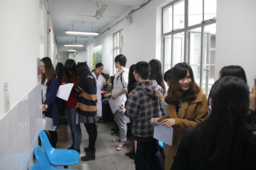 11月28日上午,外文学院12级本科生和部分11级、13级、14级本科生同学在校医院进行了集体献血。有超过50名同学进行了体检,最终成功献血的同学为38名。前来慰问的领导老师有学院副院长高永伟老师、学院党委副书记赵强老师、学工组长郑阳老师及12级别辅导员朱旭峰、吴奕霏老师。
