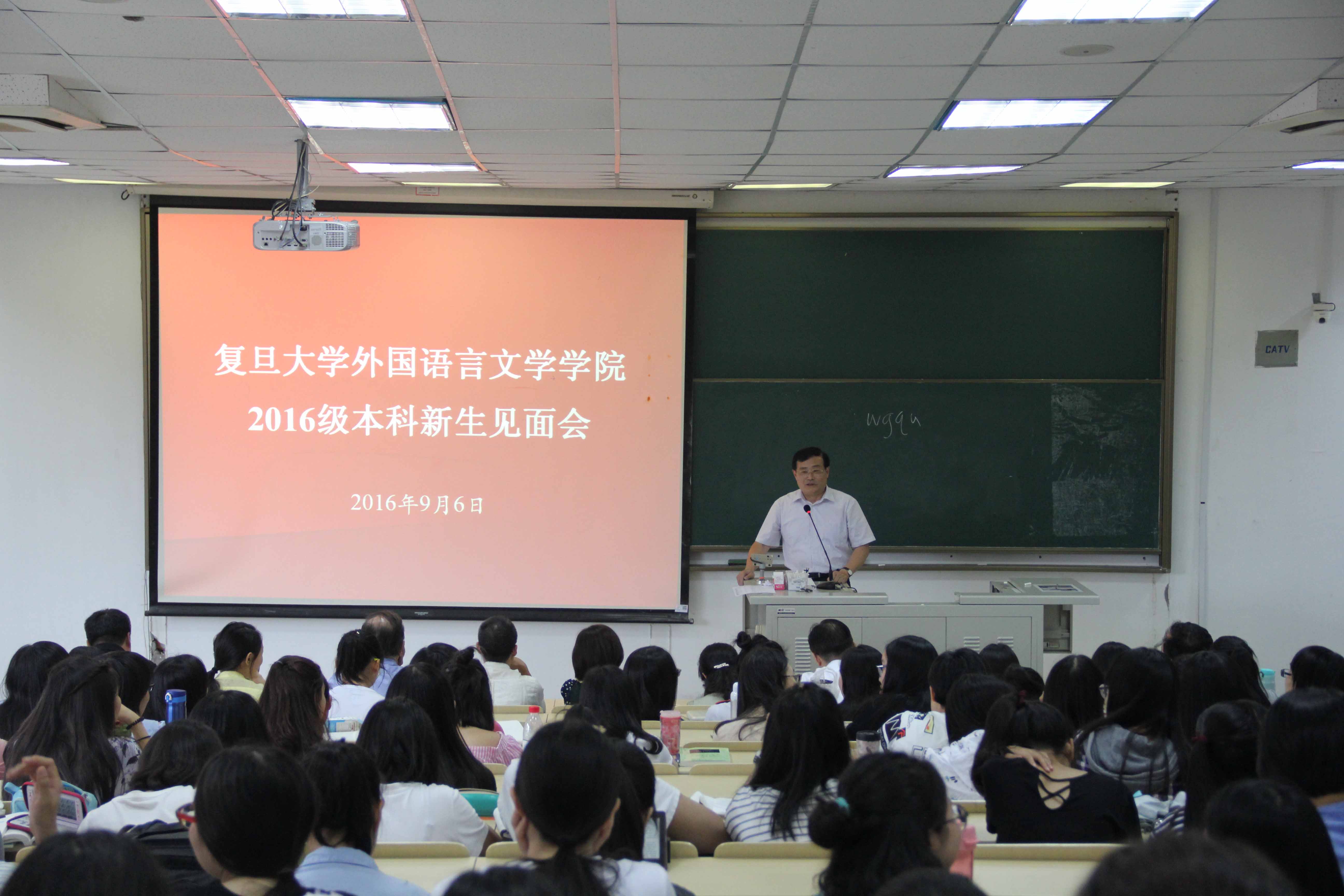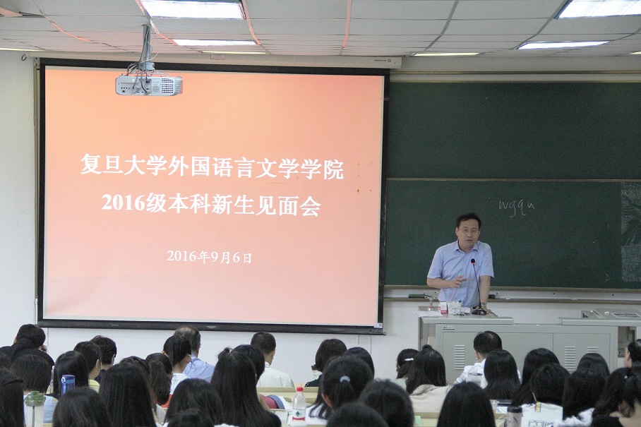 9月6日下午,外文学院举行2016级本科新生见面会,院长曲卫国、党委书记李倩、副院长高永伟、党委副书记赵昕等老师出席。曲卫国院长首先真切地表达了对同学们的欢迎,阐述了复旦和外文学院共同的教育目标,鼓励大家多与老师交流,勤于思考,培养起良好的自主学习能力,并在大学生活中能够主动地思考学业发展与人生规划,最后,他用“Whoever learns a foreign language learns a new world”告诫大家:学习外语是为了看到更多样化的世界,不要仅仅停留在语言学习的层面上,要充分利用复旦大学提供的优秀资源与平台,注重培养多样化的能力。英文系孙建教授代表学院教师为新生寄语,他首先介绍了学院的发展历史和博雅传统,并结合自己在复旦求学经历,教导大家要谦卑包容、心怀诚信、善待他人,要珍惜复旦优良的学习环境,充分利用学校的资源,认真度过四年的大学时光。最后,他引用英国作家艾萨克·沃尔顿的小说《钓客清谈》结尾的一句话来结束新生寄语——“Study to be quiet”,希望大家戒骄戒躁,潜心学术。见面会结束后,各系还分别举行了新生座谈会。