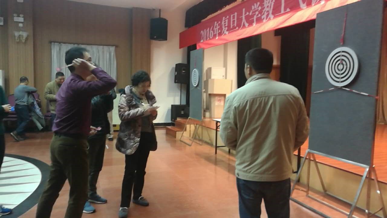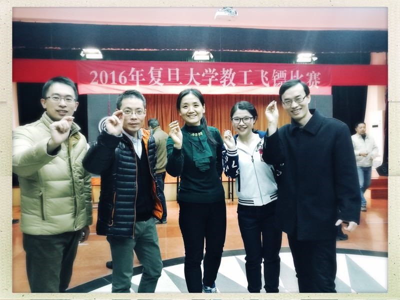 2016年12月13日,复旦大学2016年教工飞镖比赛在校工会隆重举行,我院派出了由工会文体委员郭一诚老师带队、由白冰、王亚鹏、郑阳、鹿秀川、邹波五位老师组成的代表队参加了比赛。
