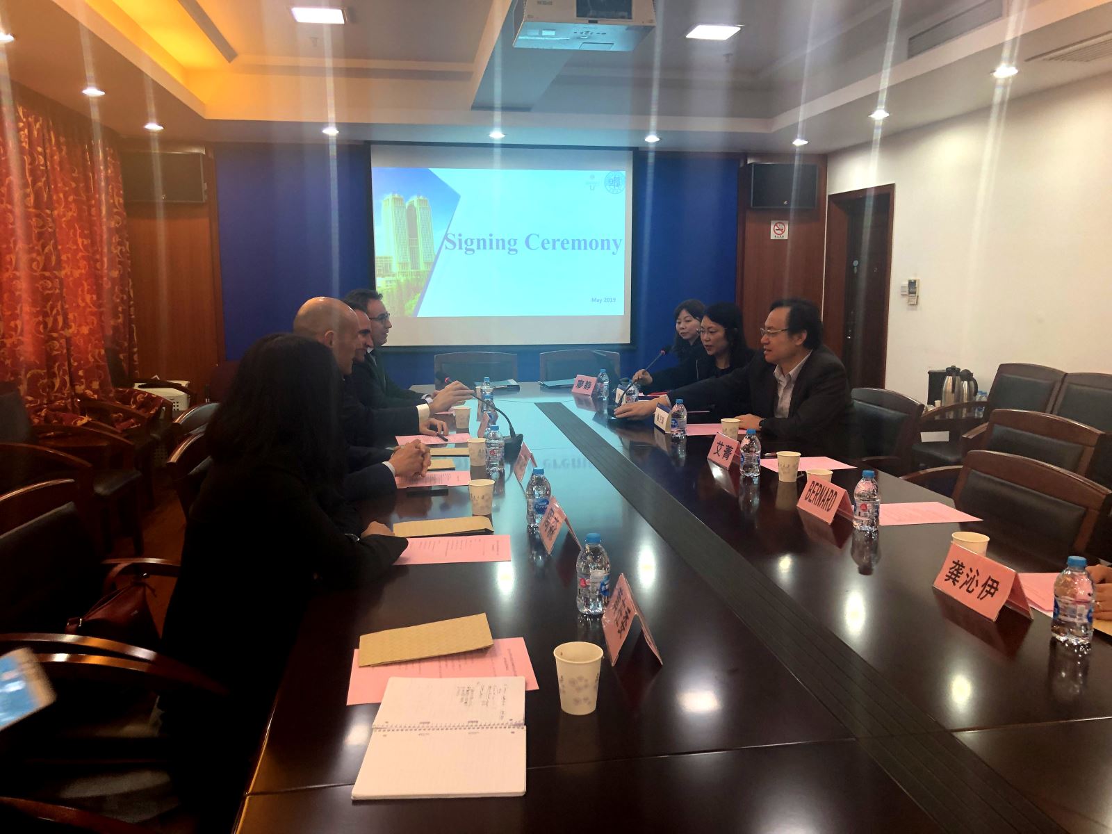 2019年5月10日,外文学院与科英布拉大学人文学院正式签署了合作协议。签字仪式由外文学院院长助理、多语种中心主任郑咏滟主持。外文学院院长曲卫国与科英布拉大学副校长João Nuno Calvão da Silva出席并代表双方签署了合作协议,葡萄牙驻沪总领事伊萨瓦见证双方签约并致贺词。