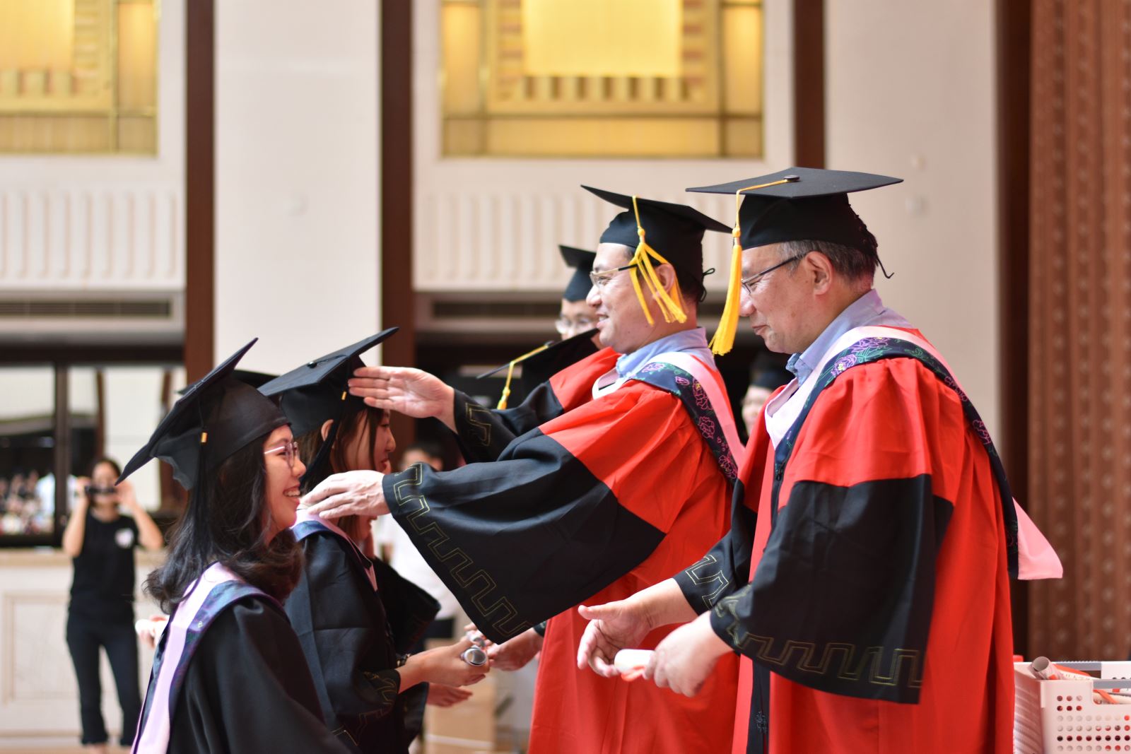 院长曲卫国老师、教授大会主席褚孝泉老师、学术委员会主任魏育青老师、副院长高永伟老师为全体毕业生拨穗并授予毕业纪念证书。学位帽上的流苏从右拨到左,代表了麦穗的成熟,象征着毕业生们已学有所成,可以展翅高飞,奔向世界各地,实践自己的理想。