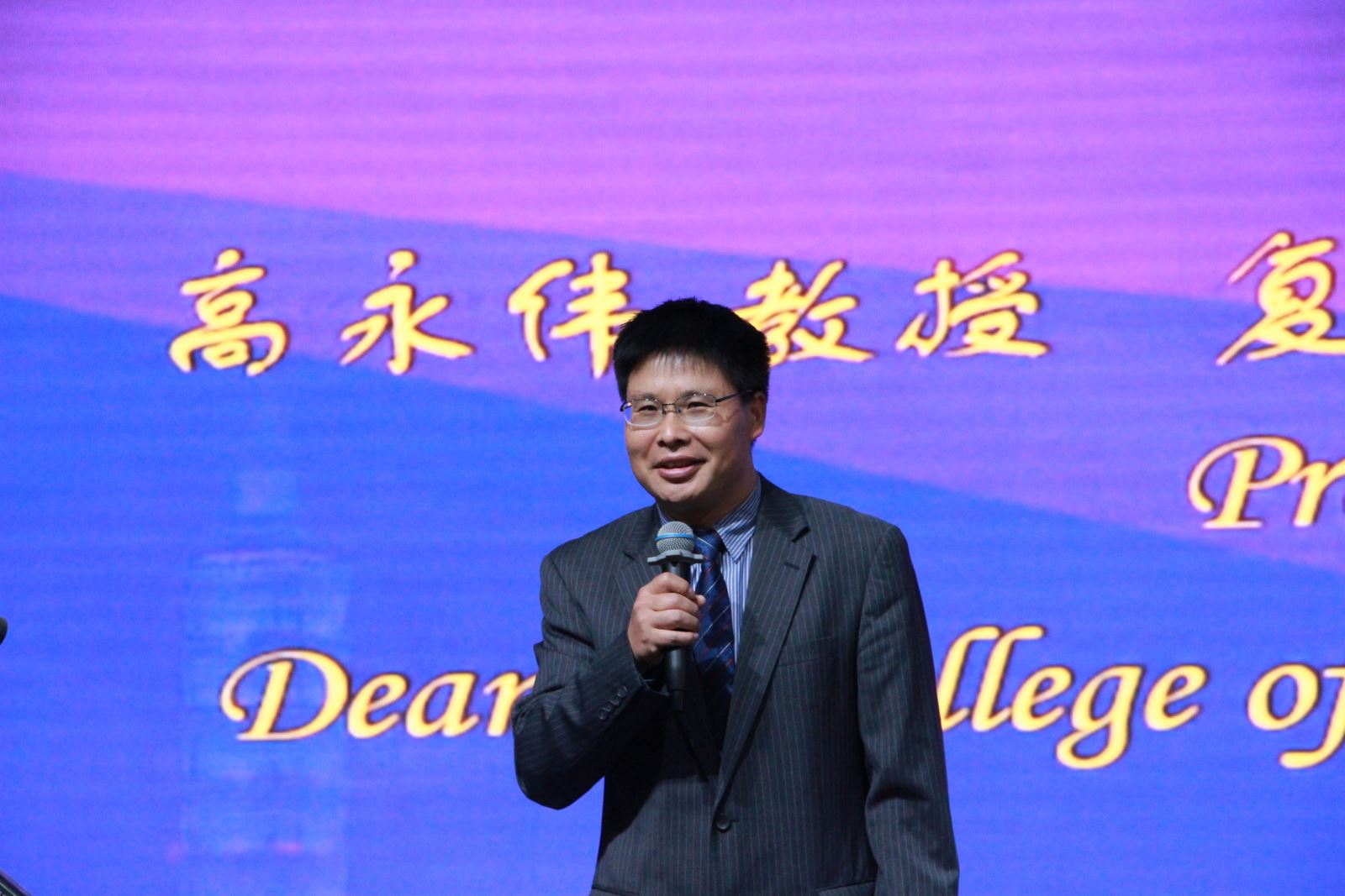 复旦大学国际合作与交流处卢丽安处长在开幕式上致辞、21世纪英语教育副总经理王蕾女士致辞、复旦大学外文学院高永伟院长在开幕式上致辞、复旦大学外文学院朱建新副院长在闭幕式上致辞